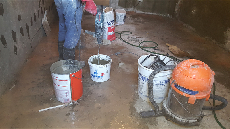 In cazul cladirilor vechi, hidroizolatia cu cimenturi osmotice are marele avantaj ca se realizeaza prin interiorul cladirii, fara a mai fi nevoie de sapaturi exerioare, pe linga talpa fundatiei